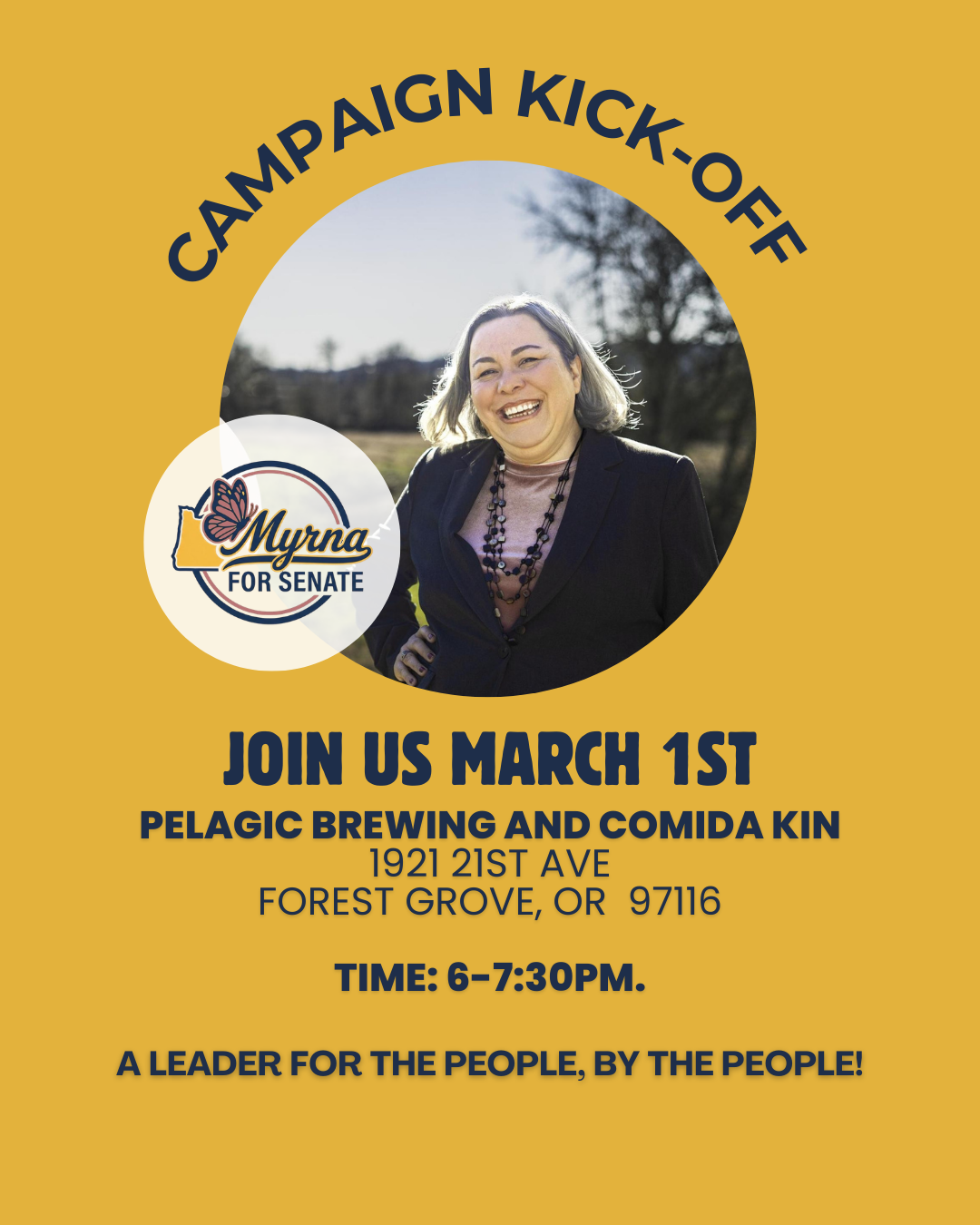 Let’s get Myrna into the Senate… RSVP below to kickoff Myrna’s campaign! Can you join for Myrna’s March 1st Campaign Kickoff? Myrna is excited to see you there! Donate Here!